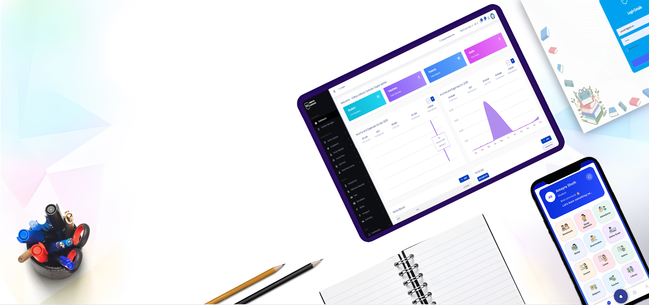 Vidhyaaahvan streamlines academic and administrative operations connecting teachers, parents, and students through one powerful platform.