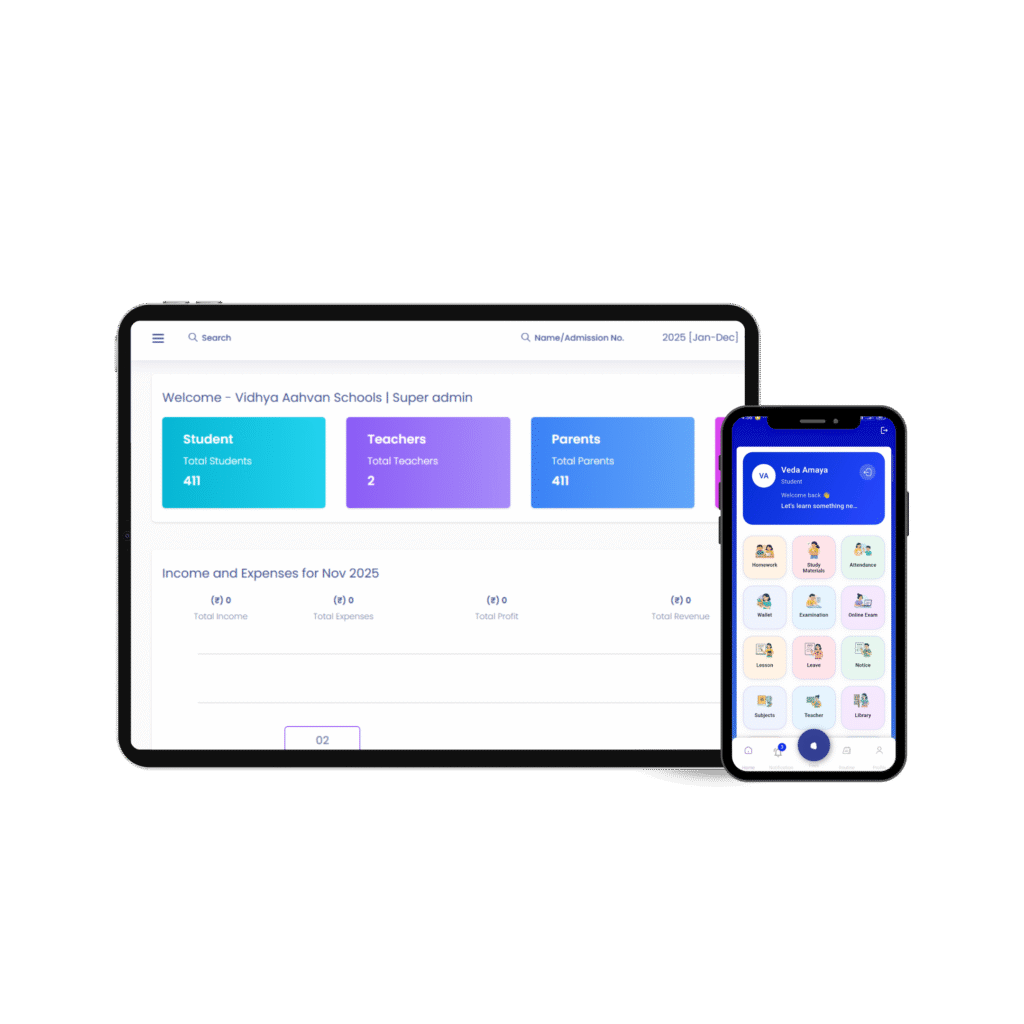 Absolutely. Vidhya Aahvan comes with a dedicated mobile app for teachers, students, and parents — enabling communication, homework updates, notifications, and performance tracking anytime, anywhere.